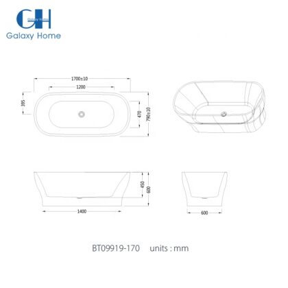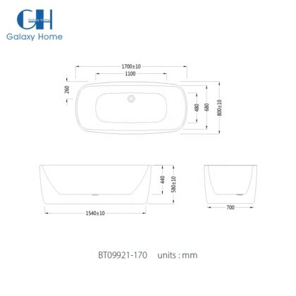 Galaxy Home – Model BT09917 170 Bathroom Bath Tub Bathtubs Acrylic Bathtub With Drainer Bathtubs