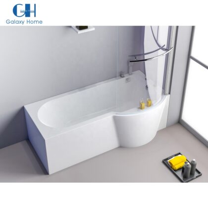 Galaxy Home – Model BT09918 150 Acrylic White Bathroom Bath Tub Kids Adult Bathtub With Glass Screen And Drainer Bathtubs