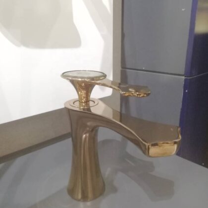 Galaxy Home - Foshan Grifo de lavabo con menos presión montado en cubierta de lujo Grifo con mango giratorio de un solo orificio Grifos mezcladores de agua