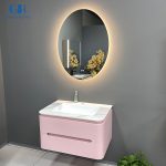 Add a playful touch of elegance to your bathroom with this compact, wall-mounted vanity in a soft blush pink. Designed for smaller spaces without compromising on functionality, it features a sleek sintered stone countertop paired with a high-quality ceramic basin for durability and easy maintenance.The dual-drawer layout maximizes storage while maintaining a clean, minimal silhouette. Complemented by an oval LED mirror with built-in defogging function, this vanity is the perfect blend of charm and practicality for modern bathrooms.