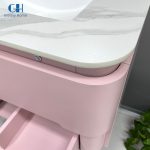 Add a playful touch of elegance to your bathroom with this compact, wall-mounted vanity in a soft blush pink. Designed for smaller spaces without compromising on functionality, it features a sleek sintered stone countertop paired with a high-quality ceramic basin for durability and easy maintenance.