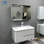 The integrated basin is crafted from durable solid surface material, offering a seamless, easy-to-clean design. The standout feature is the multi-function mirror cabinet: a clear mirror for daily grooming, a built-in magnifying mirror for detail work, and dedicated compartments for bottles, cosmetics, and jewelry. Every inch is thoughtfully designed for modern living.
