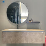 This modern wall-mounted vanity set is designed to bring both elegance and function into your bathroom. The vanity features one wide drawer and a smaller side drawer, offering practical storage with an organized layout. The sintered stone countertop is paired with a ceramic basin for a seamless, high-end finish. Above, a circular mirror with a tunnel-light design adds visual drama while enhancing daily routines. The LED lighting offers three adjustable color temperatures and can be controlled with a simple wave—no touch required. Ideal for modern lifestyles and stylish interiors.