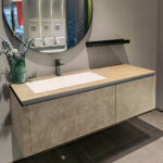Contemporary Floating Vanity with Circular LED Mirror & Sintered Stone Top | Galaxy Home