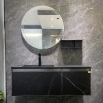 Elevate your bathroom with this sleek black vanity set designed for bold, modern interiors. Featuring sintered stone drawer fronts and a seamless black solid surface basin, this piece offers a perfect blend of texture and durability. The two-drawer layout ensures smart storage, while the round mirror with edge-lit LED lighting and built-in defogger keeps your reflection clear and your routine smooth—even in steamy conditions.Galaxyhome is your affordable one-stop shop building materials supplier in China. We provide consultancy, design.building materials supply for your residential, real estate & hospitality project around the world.