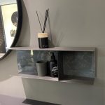 Offers ambient, task, and daylight tones—ideal for makeup, grooming, or relaxation.Floating Shelf: Stainless Steel + Sintered Stone