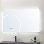 The smart mirror is equipped with LED lighting, defogging functionality, and a convenient time display.