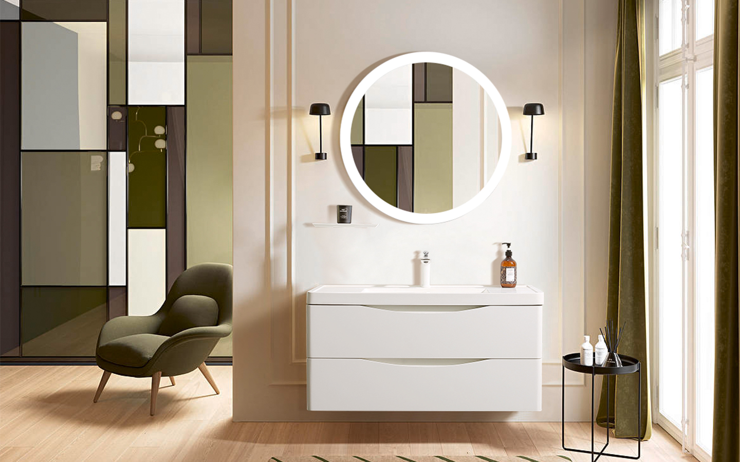 Elevate the ambiance with three colors of LED lighting, creating a unique rainbow-like effect around the cabinet. The LED lights, coupled with a distinctive outer frame, offer a modern and vibrant touch to your bathroom.