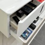 The basin, a ceramic integrated basin, and the countertop offer a myriad of customization options, including Sintered stone, marble, engineered stone, and choices for above-counter or under-mount basins.