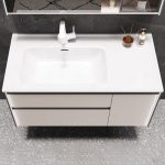 The countertop’s ceramic construction ensures durability while adding an elegant touch to the overall design.