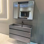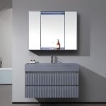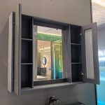 Transform Your Bathroom with this Innovative Gray Bathroom Cabinet: A Stylish and Practical Solution for Storage and Lighting