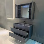 The cabinet’s sleek gray color gives it a modern and sophisticated look that can complement any bathroom decor. Its two drawers, each equipped with lights, provide ample storage space for all your bathroom essentials.