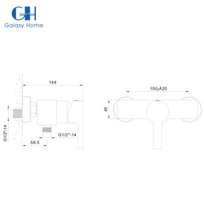 Galaxy Home – Mélangeur de douche à pluie avec tuyau R18 de haute qualité, ensemble de douche de salle de bain mural à 2 fonctions, douches