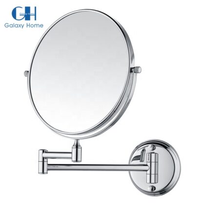 Galaxy Home – Miroir circulaire double face avec miroir de maquillage mural pour salle de bain avec contrôle extensible flexible, bras pliable, accessoires de salle de bain