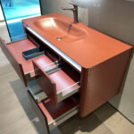Striking visual contrast that enhances modern interiors.Integrated Red Solid Surface Basin