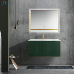 Deep Green Vanity with Gold-Framed LED Square Mirror with Anti-Fog | Galaxy Home