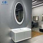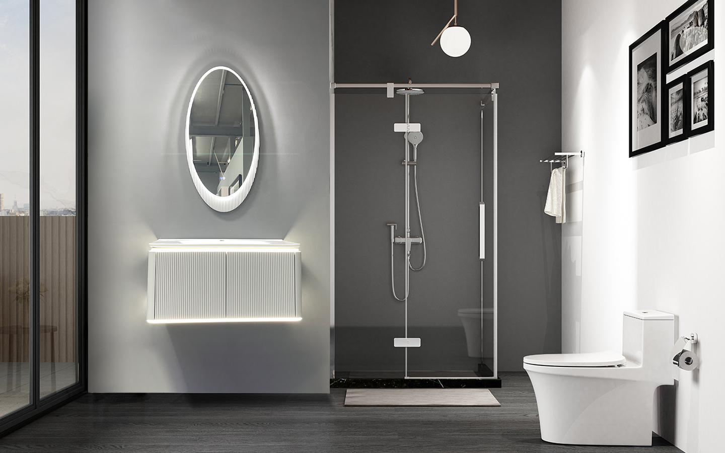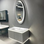 Aesthetic Harmony: The elliptical backplate of the smart mirror complements the design of the bathroom cabinet, contributing to a cohesive and visually appealing space.