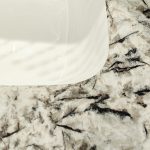 Seamless Marble Countertop with Ceramic Basin: Elevate your bathroom aesthetic with the seamless marble countertop seamlessly integrating with a ceramic basin, ensuring durability and timeless elegance.