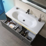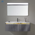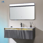 This wall-mounted grey vanity combines minimalist aesthetics with practical design. Featuring two spacious drawers, it offers easy-access storage while keeping your space clutter-free. The integrated solid surface basin adds a smooth, seamless finish that’s both stylish and easy to maintain. Paired with a square LED mirror framed in sleek metal, this set brings a modern edge to your bathroom without overwhelming the space. Galaxyhome is your affordable one-stop shop building materials supplier in China. We provide consultancy, design.building materials supply for your residential, real estate & hospitality project around the world.